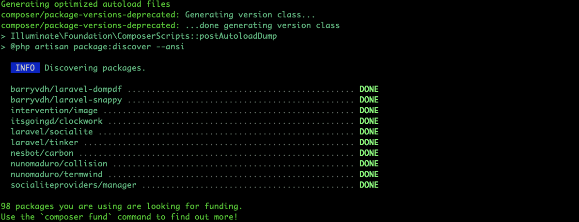 Tiếp theo, cài đặt các gói phụ thuộc của BookStack bằng lệnh Composer: