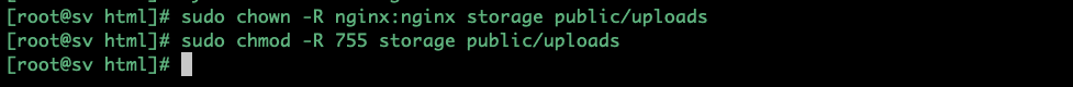 sudo chown -R nginx:nginx storage public/uploads