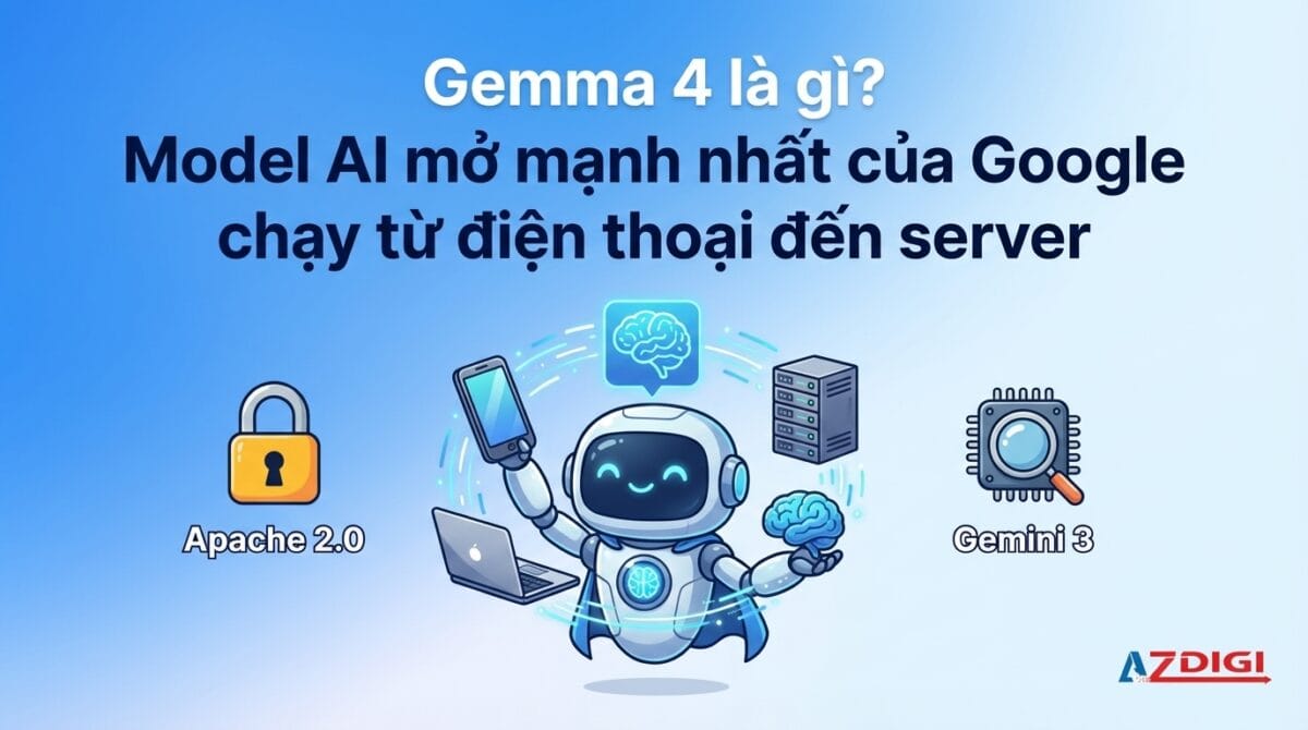 Google DeepMind vừa phát hành Gemma 4 vào ngày 2/4/2026. Đây là thế hệ mới nhất trong dòng model AI mở của Google, xây dựng trên cùng công nghệ với Gemini 3. Có 4 phiên bản từ 2B đến 31B parameters, chạy được từ điện thoại đến server, và lần đầu tiên dùng license Apache 2.0.