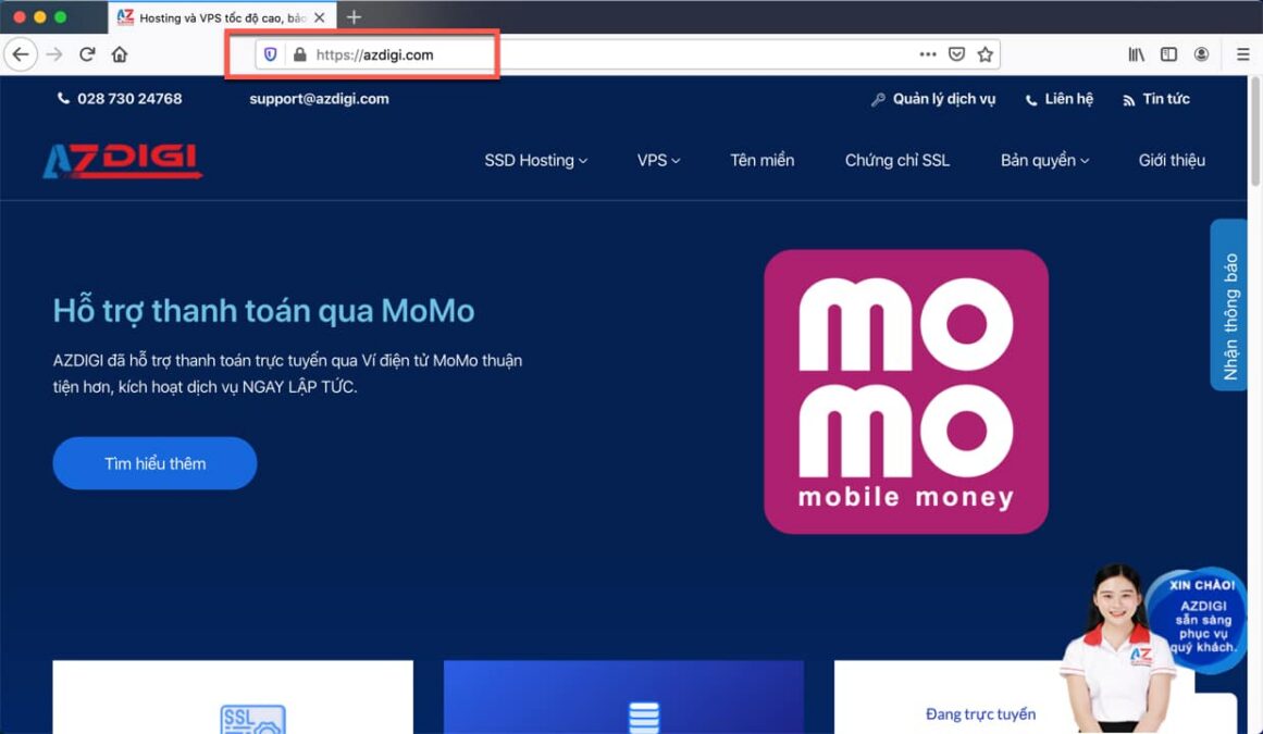 AZDIGI cung cấp chứng chỉ SSL với giá chỉ từ 154.000 đồng/năm.