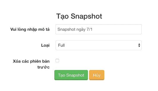 - Full: Snapshot lại toàn bộ dữ liệu bên trong VPS và mỗi bản snapshot kiểu full là một bản riêng biệt.