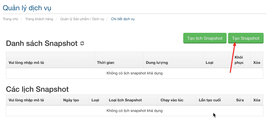 Tại đây, bạn nhấp vào nút Tạo Snapshot.