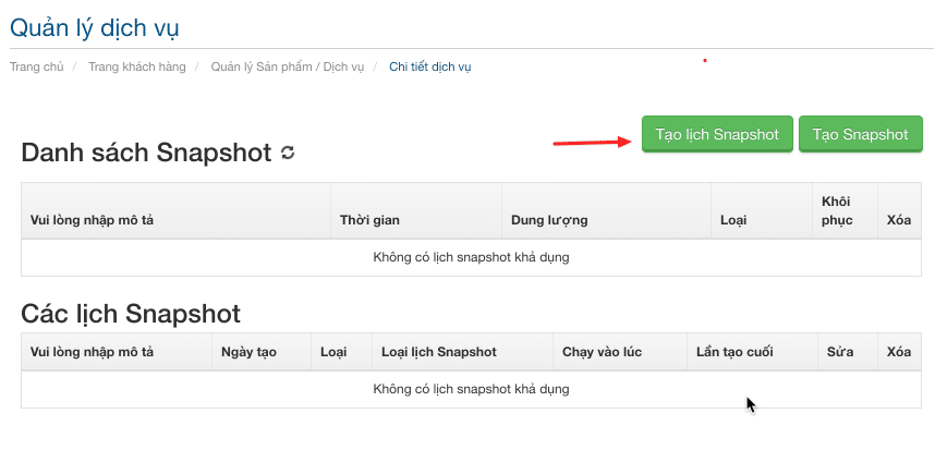 - Hệ thống máy chủ Cloud Server không có tự động sao lưu dữ liệu mỗi tuần nên khách hàng phải tự thiết lập Snapshot cho mình.