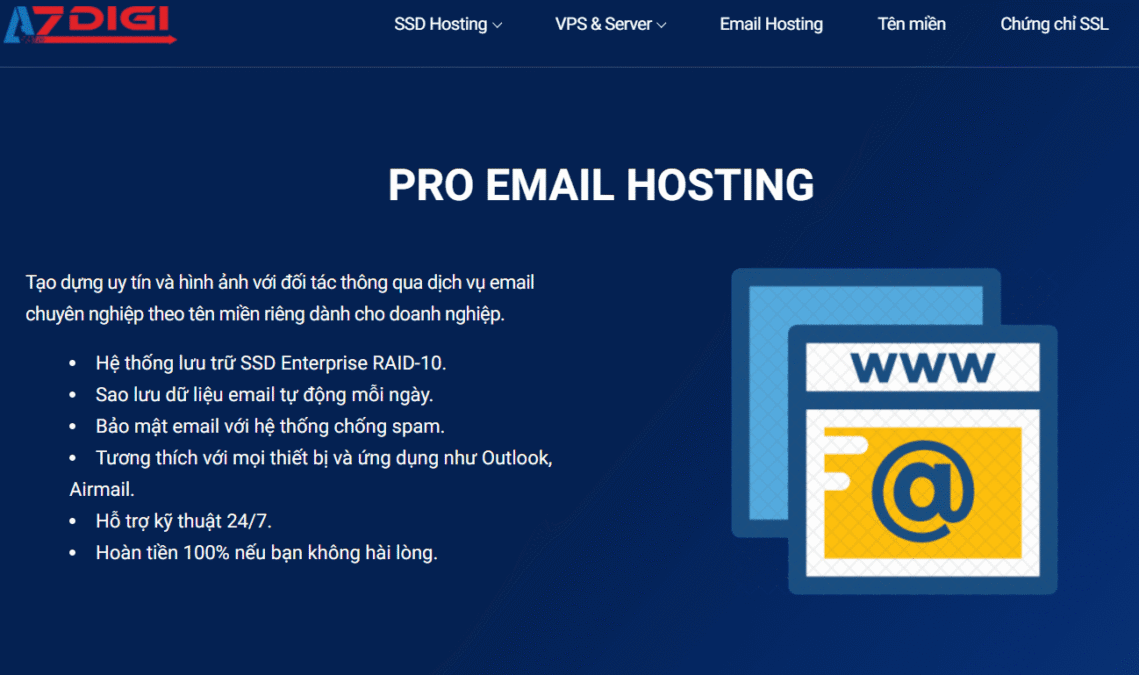 - Tạo niềm tin cho khách hàng, xây dựng hình ảnh, uy tín cho các doanh nghiệp trong quá trình làm việc hay truyền nhận thông tin thông qua việc sử dụng email theo tên miền riêng của doanh nghiệp (ví dụ support@azdigi.com).