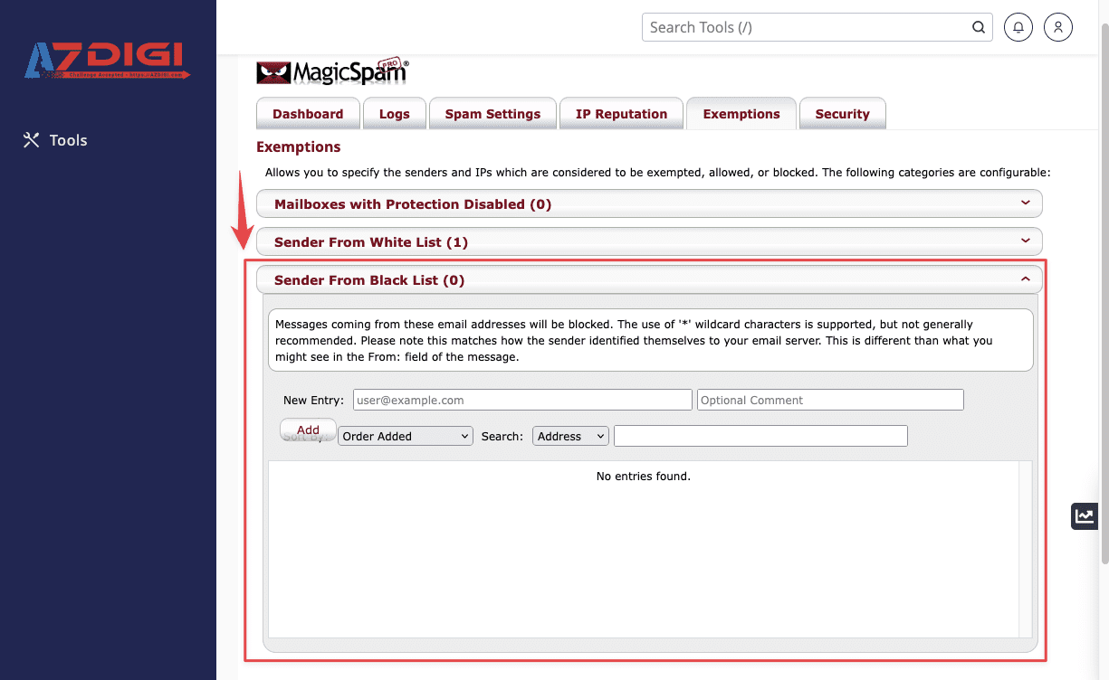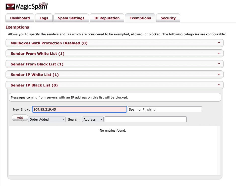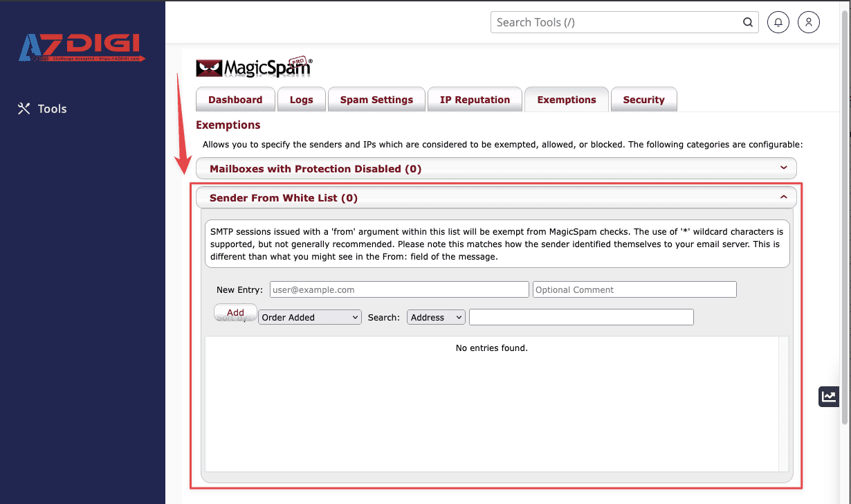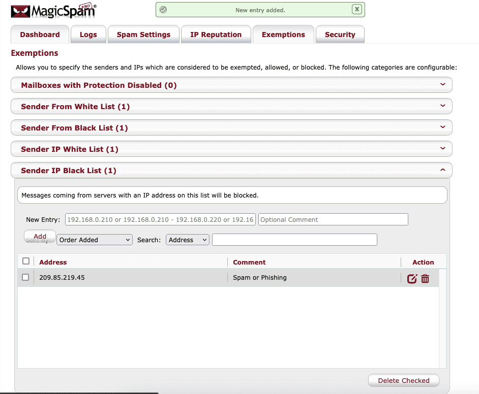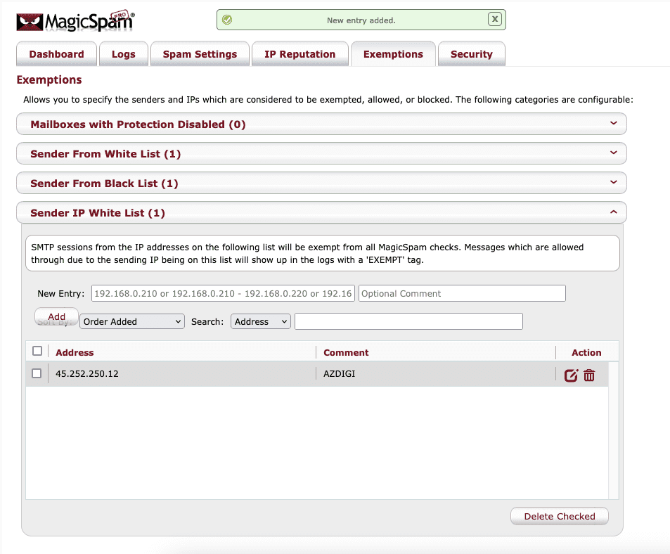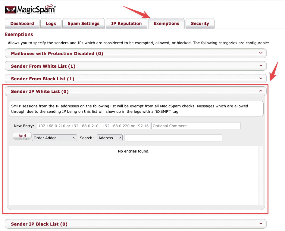 Những IP được thêm vào Whitelist sẽ được bỏ qua tất cả các hoạt động kiểm tra từ MagicSpam.