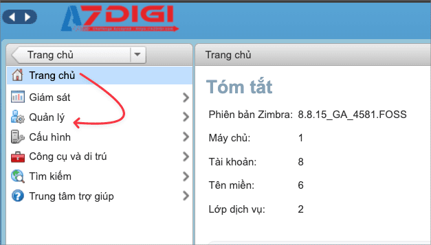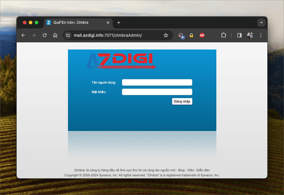 Bước 1: Đăng nhập vào quản trị Zimbra