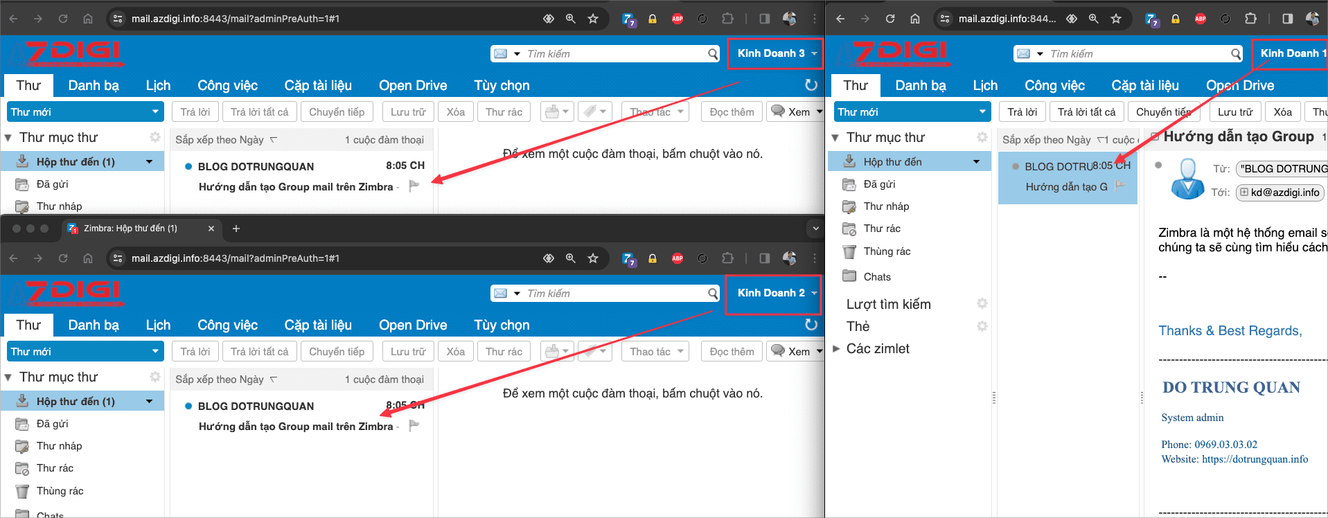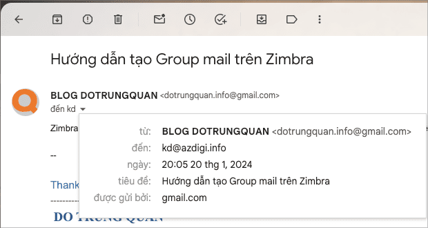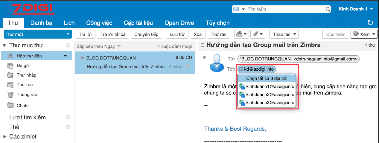 Bây giờ tôi sẽ kiểm tra bằng cách gửi một mail vào địa chỉ mail đại diện. Trong hướng dẫn này tôi gửi về kd@azdigi.info