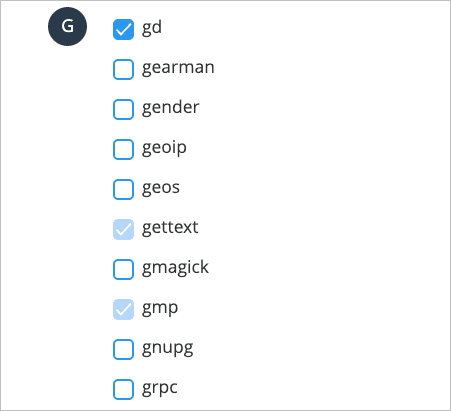• gettext: Phần mở rộng gettext cung cấp hỗ trợ cho việc dịch ngôn ngữ. Nó sử dụng thư viện gettext, một thư viện mã nguồn mở được sử dụng để quản lý các chuỗi được dịch.