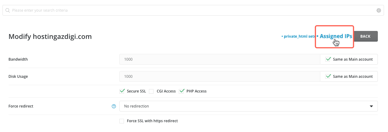 Chọn Assigned IPs để vào trang quản lý các IP của tên miền này.