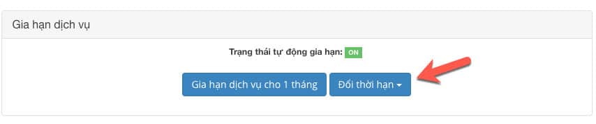 Sau đó quý khách nhấp vào liên kết Đổi thời hạn dịch vụ như ảnh và chọn thời hạn cần đổi.
