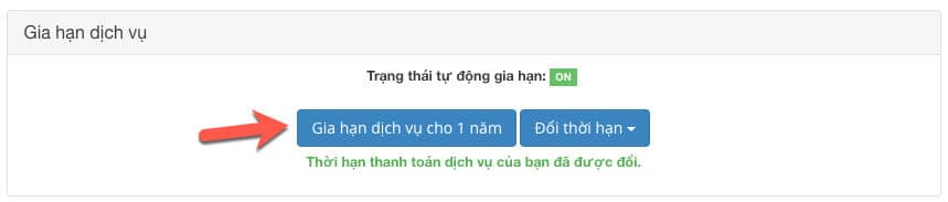 Sau khi ấn đổi, quý khách nút Gia hạn dịch vụ kế bên để hệ thống tạo hóa đơn gia hạn.