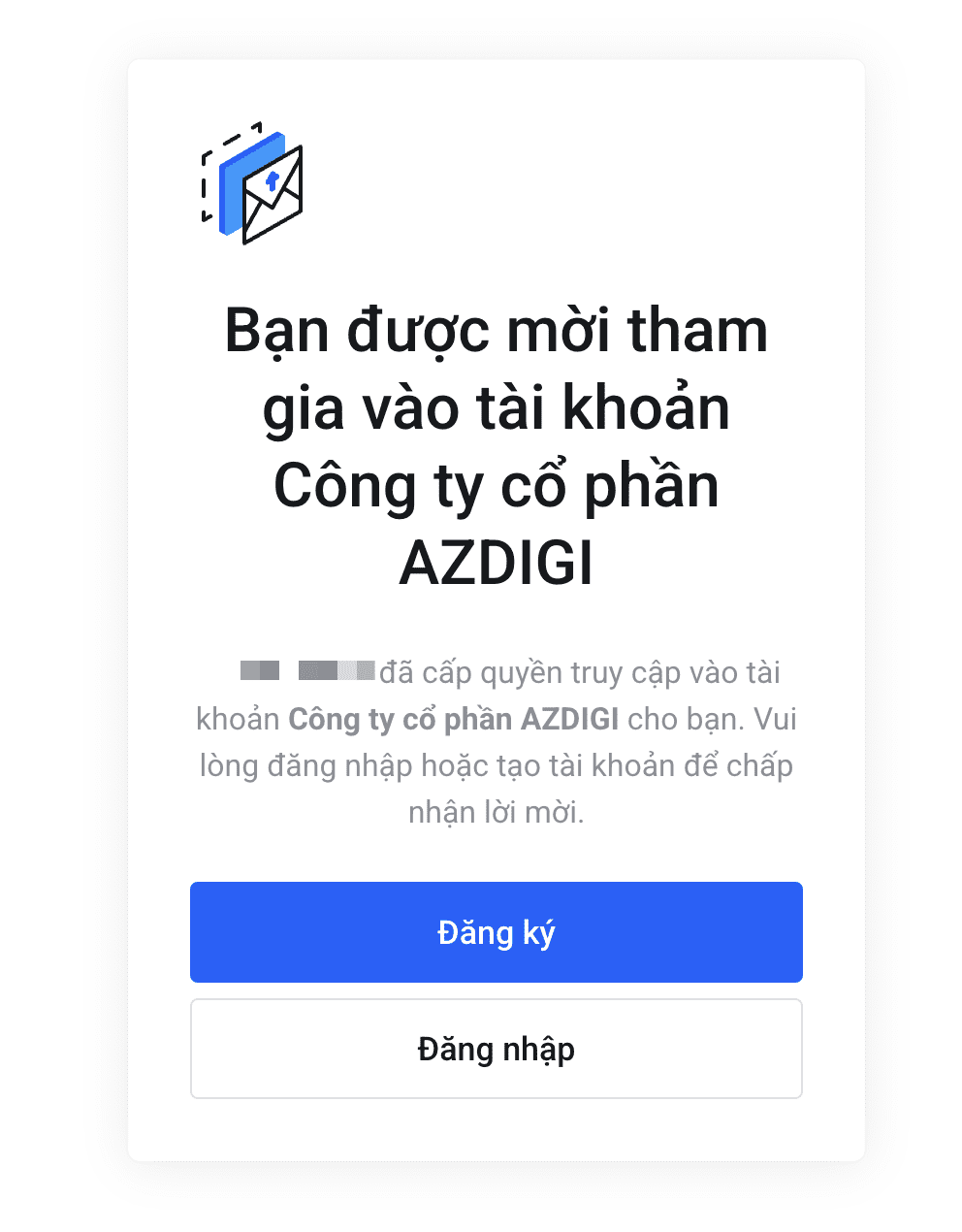 Và sau khi nhấp vào liên kết chấp nhận lời mời thì sẽ tiến hành đồng ý lời mời hoặc tiến hành khởi tạo tài khoản người dùng (nếu email này chưa có sử dụng tại AZDIGI) hoặc đăng nhập nếu người được mời đã có sẵn thông tin.