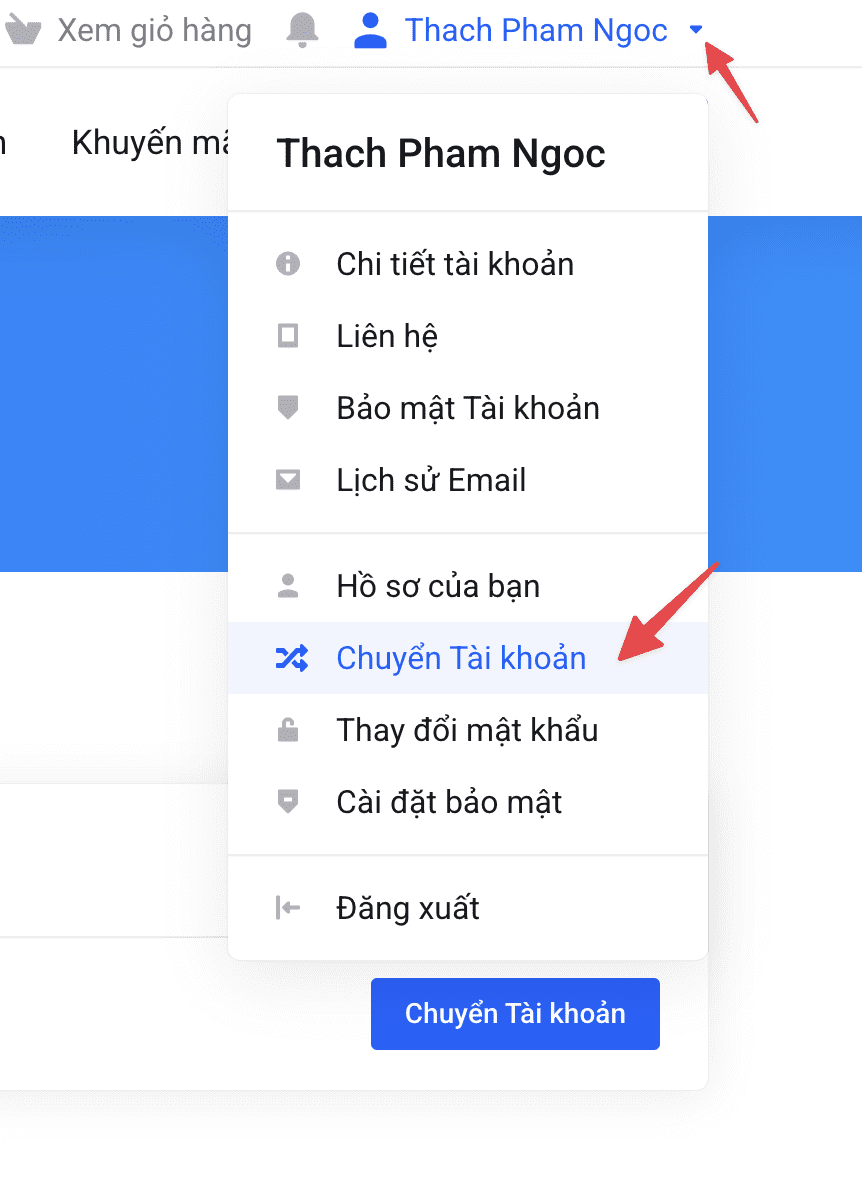 Sau đó bạn có thể nhấp vào nút Chuyển tài khoản của tài khoản cần truy cập vào.
