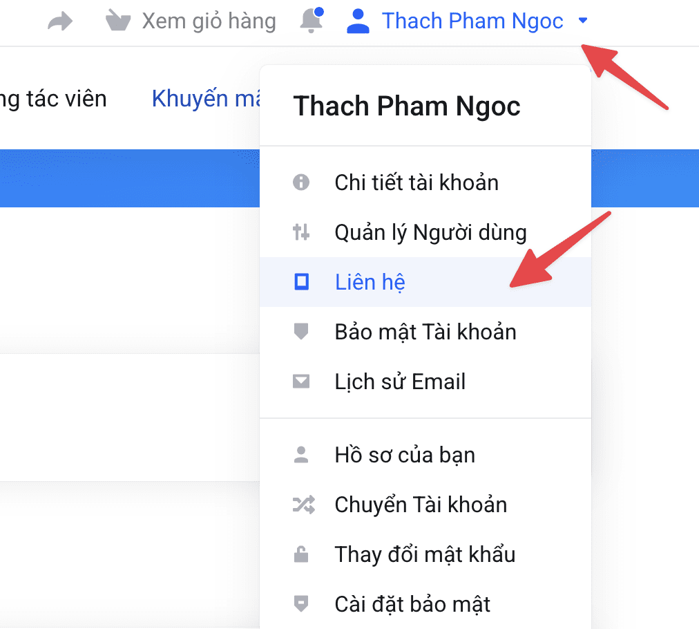 Để thêm một liên hệ vào danh bạ, bạn có thể truy cập vào khu vực Liên hệ trên thanh quản lý.
