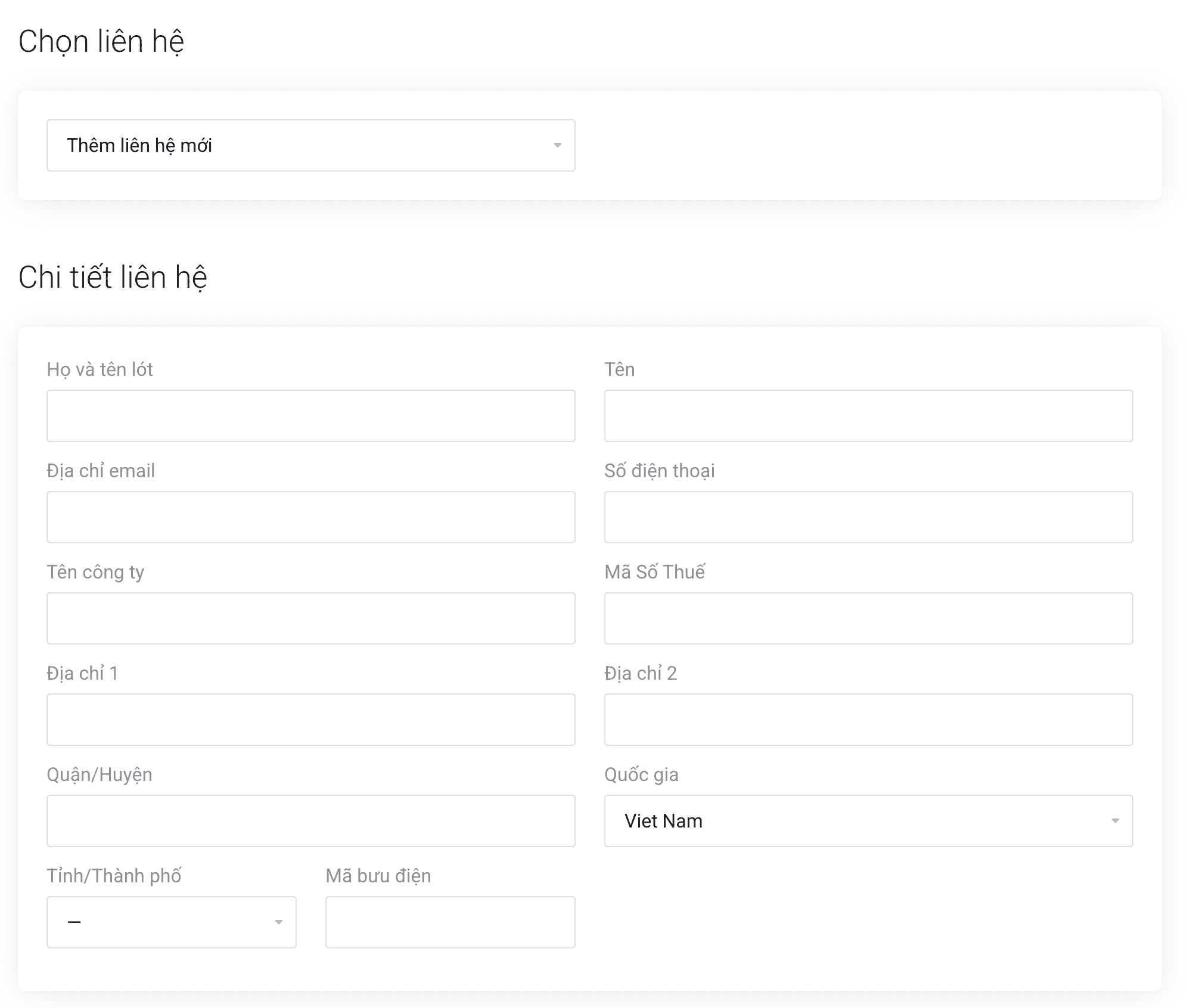 Sau đó ở mục Chọn liên hệ thì chọn Thêm liên hệ mới, và nhập thông tin của người liên hệ được thêm vào phía bên dưới, nhiều trường hợp bạn chỉ cần nhập email là được không bắt buộc nhập toàn bộ thông tin.