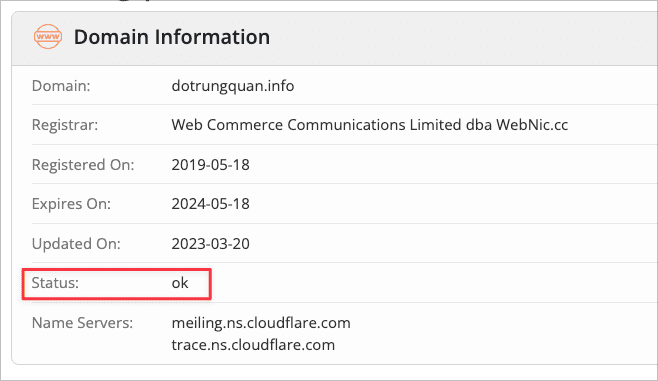 Ý nghĩa của trạng thái này: Trạng thái thể hiện tên miền hoạt động bình thường sau khi đăng ký.