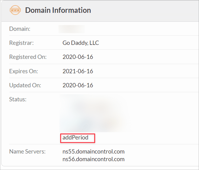 - Tên miền của bạn đã hết hạn và bạn đã yêu cầu khôi phục tên miền trong thời gian addPeriod.