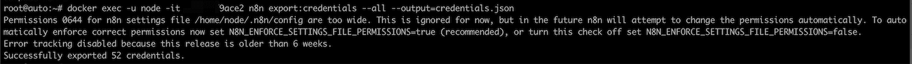 docker exec -u node -it 650***f9ace2 n8n export:credentials --all --output=credentials.json
