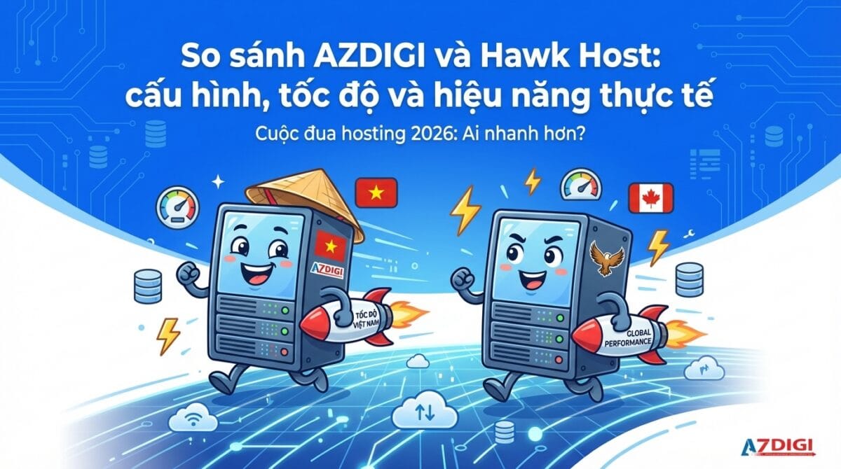 AZDIGI và Hawk Host là hai cái tên quen thuộc với người dùng Việt. Một bên là nhà cung cấp nội địa với datacenter tại TP.HCM, bên kia là nhà cung cấp Canada hoạt động từ 2004 với mạng lưới datacenter trải dài 7 quốc gia. Bài viết này sẽ đi sâu so sánh cấu hình, hiệu năng thực tế, công nghệ và những yếu tố mà bạn cần cân nhắc khi chọn hosting cho website hướng tới người dùng Việt Nam.