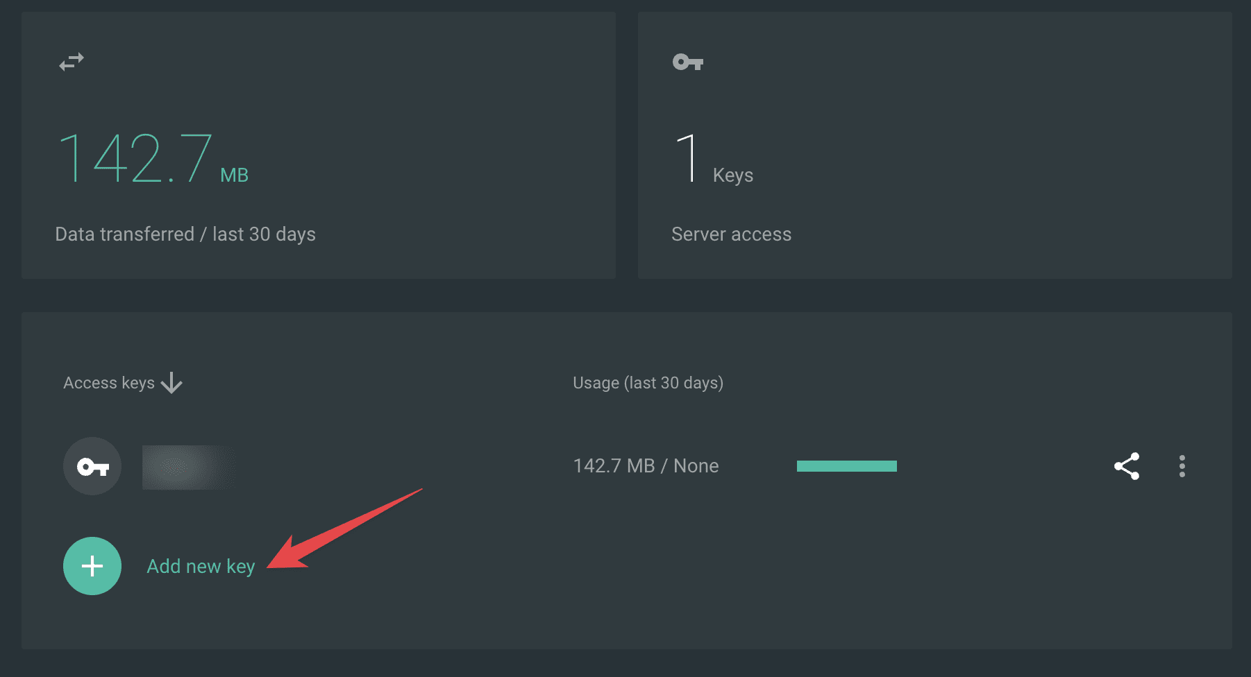 Để tạo khoá truy cập, bạn ấn vào nút Add new key ở Outline Manager và nhập tên hiển thị của khoá là đã hoàn tất.