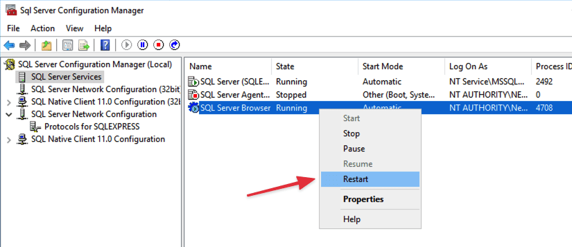 Bước cuối cùng, khởi động lại Microsoft SQL Server.