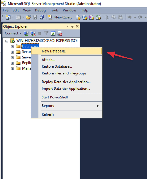 Sau khi kết nối thành công, tạo và sử dụng Microsoft SQL Server 2014 Express với thao tác cơ bản đầu tiên là Tạo mới Database (New Database).