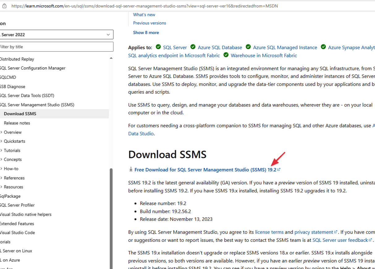Nó sẽ dẫn bạn tới 1 trang download SQL Server Management Studio.