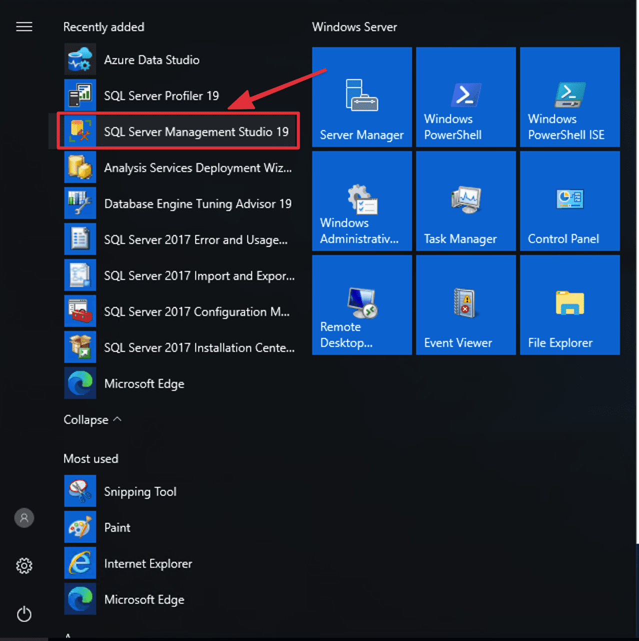 Để kết nối tới Microsoft SQL Server 2017, mở công cụ SQL Server Management Studio mà chúng ta đã cài đặt ở bên trên.