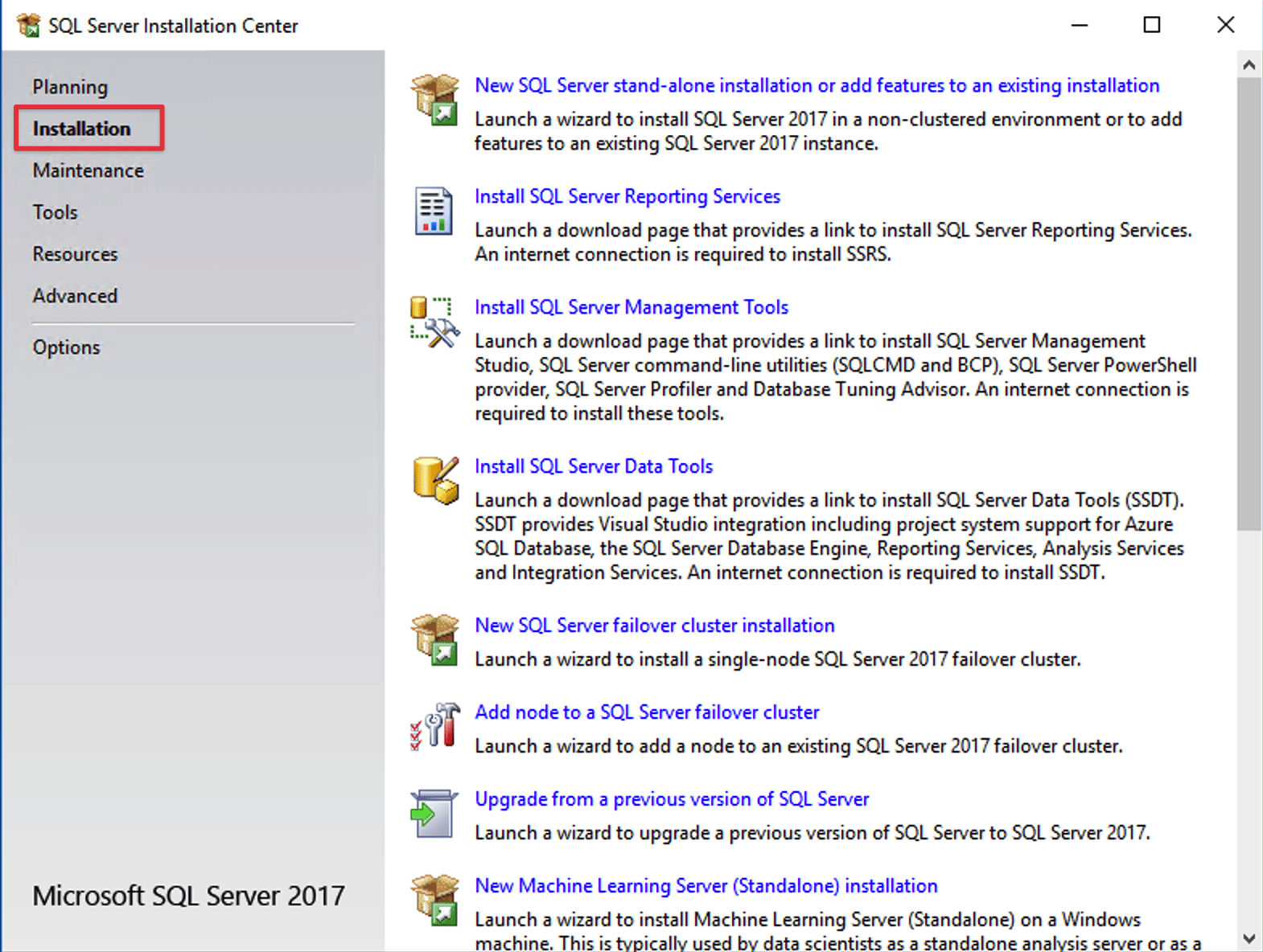 Bước 1: Chạy Trình cài đặt SQL Server 2017