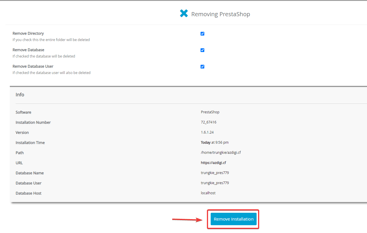Cách xoá website PrestaShop đã cài trên Softaculous