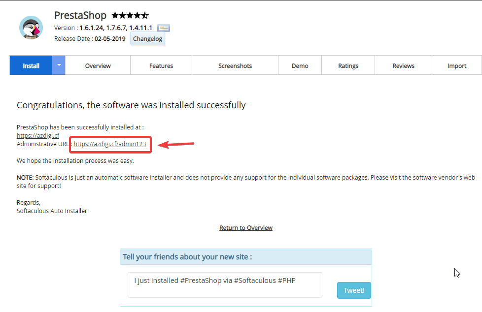 Như vậy ở bài viết này AZDIGI đã hướng dẫn bạn cách cài đặt mã nguồn PrestaShop lên website hoàn chỉnh thông qua công cụ Softaculous. Ở các bài viết tới AZDIGI sẽ hướng dẫn bạn cụ thể hơn cách sử dụng PrestaShop. Nếu thấy bài viết hữu ích bạn có thể chia sẻ rộng rãi đến mọi người nhé.