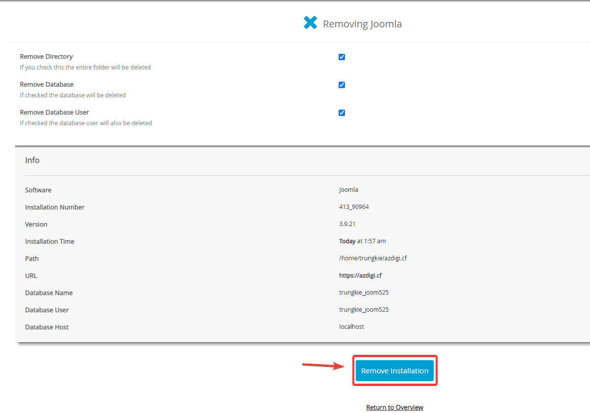 Cách xoá website Joomla đã cài trên Softaculous