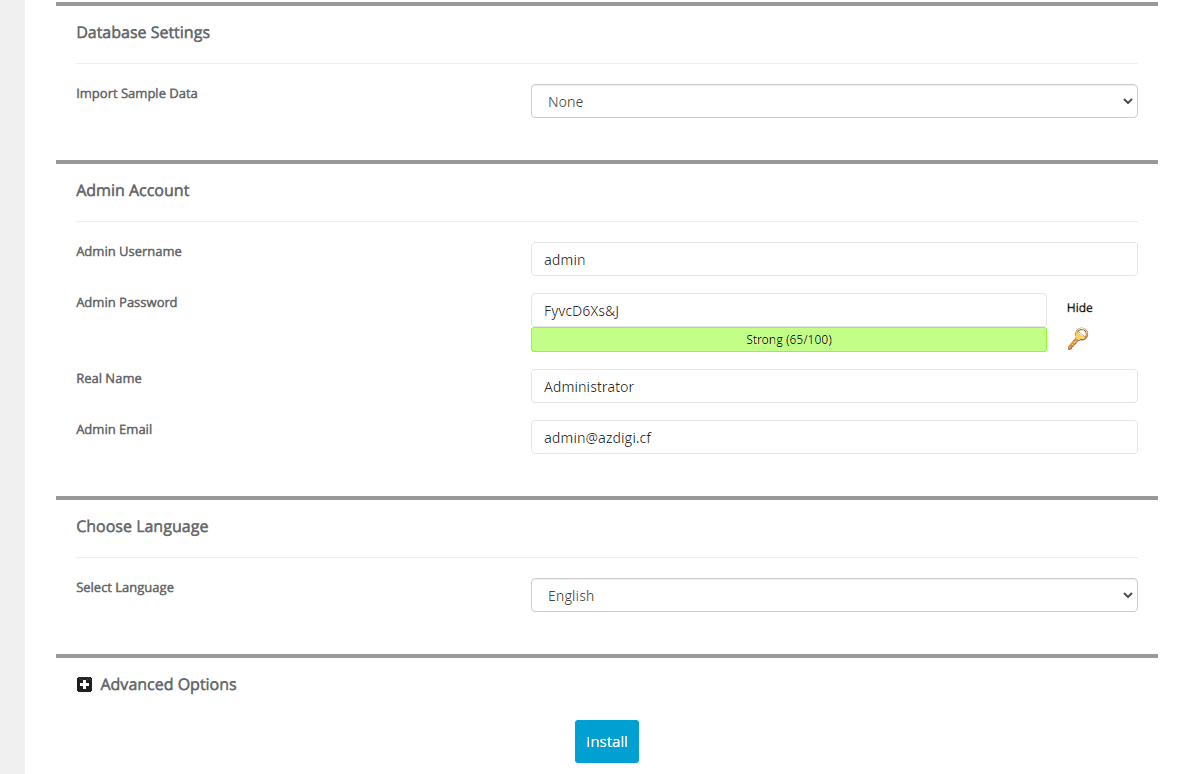 Sau khi điền đầy đủ thông tin bạn nhấn Install để tiến hành cài đặt.