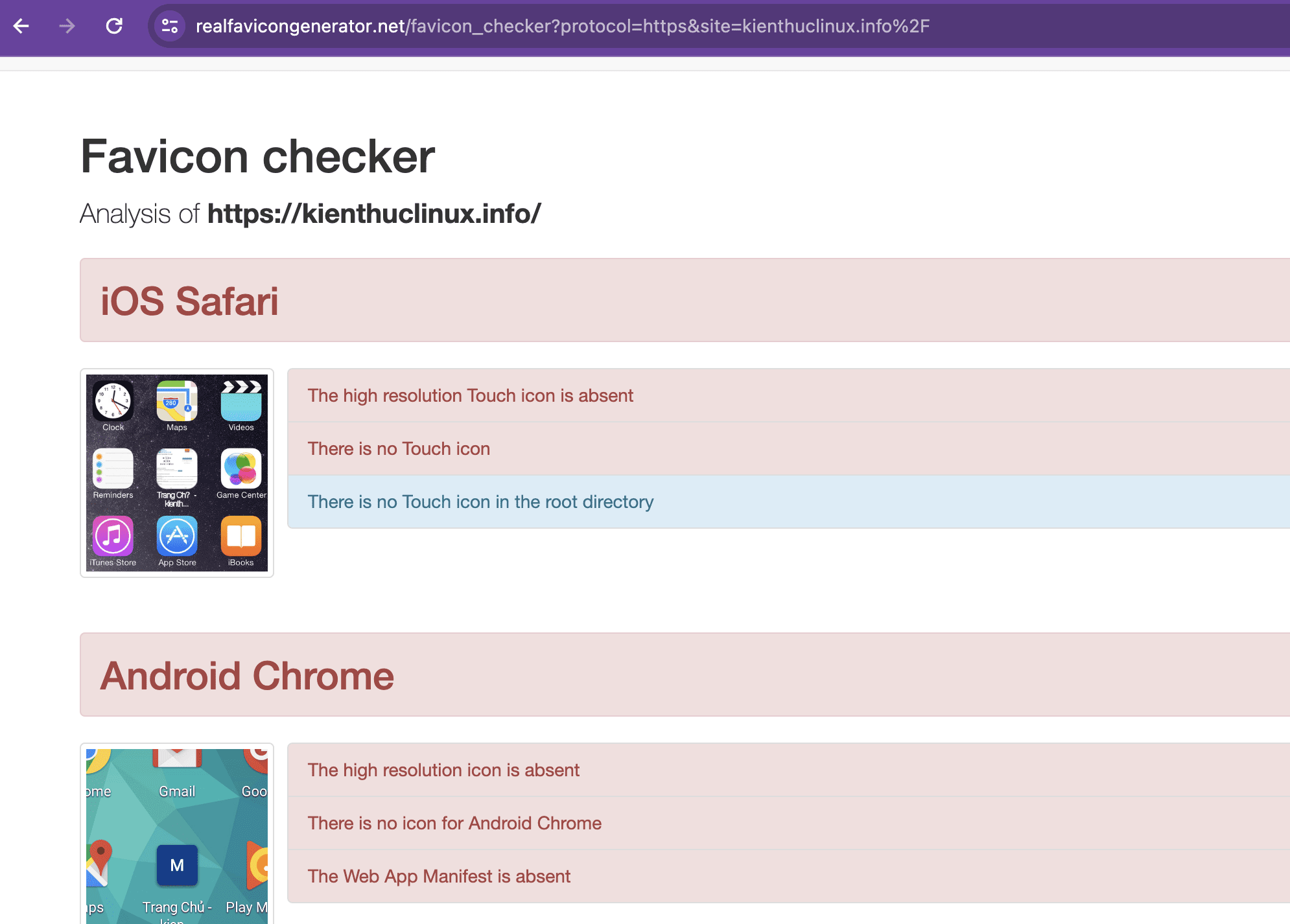Qua kiểm tra thì website lỗi hiển thị Favicon