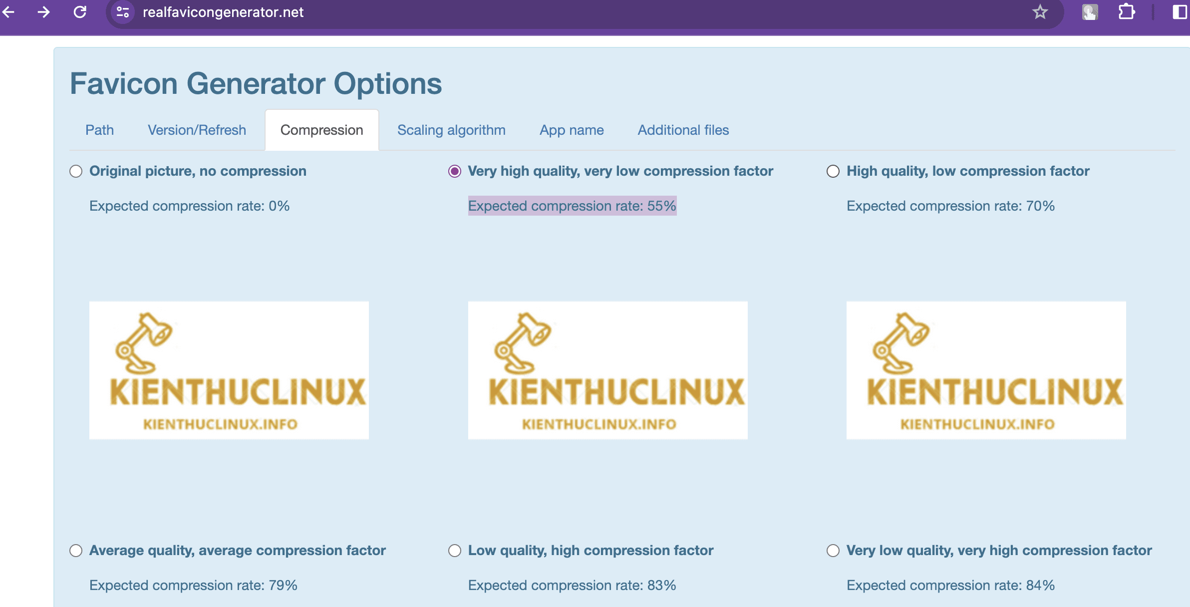 Sau khi đã upload lên bạn chọn tỷ lệ nén cho nhẹ lại theo mục đích thiết kế.
