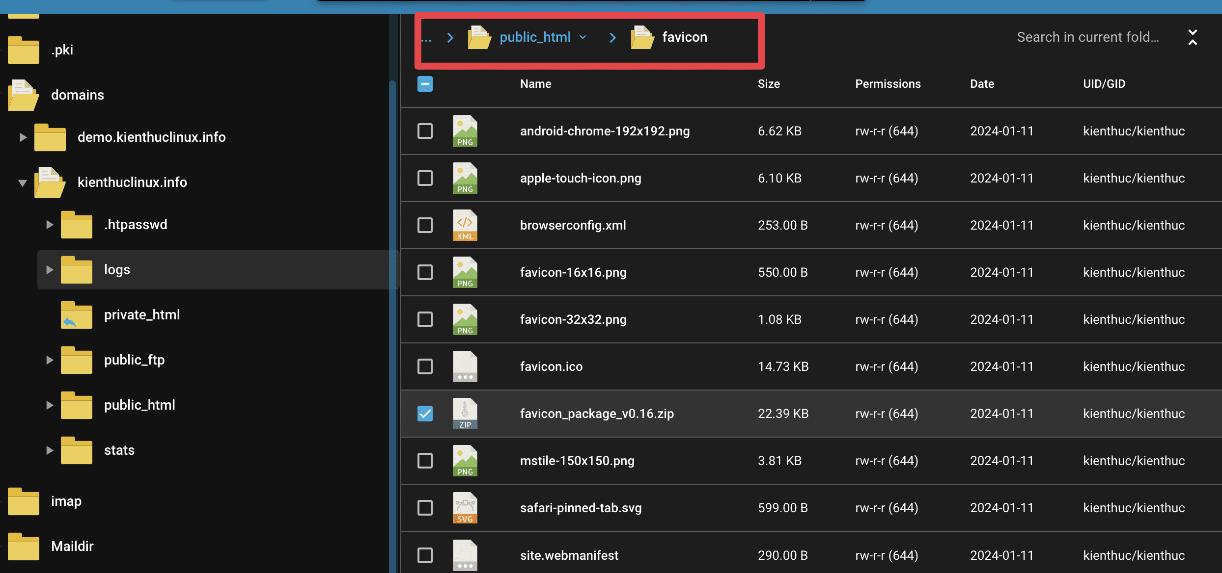 Bạn tạo thư mục favicon trước rồi upload file nén lên.