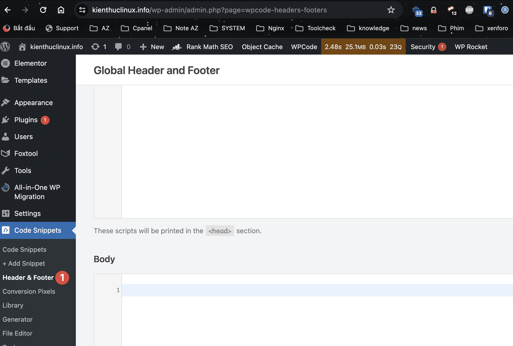 Việc chèn mã nguồn vào phần Header và Footer của trang web WordPress có thể được thực hiện thông qua một số cách khác nhau, tùy thuộc vào tính năng hỗ trợ của theme hoặc plugin bạn đang sử dụng.