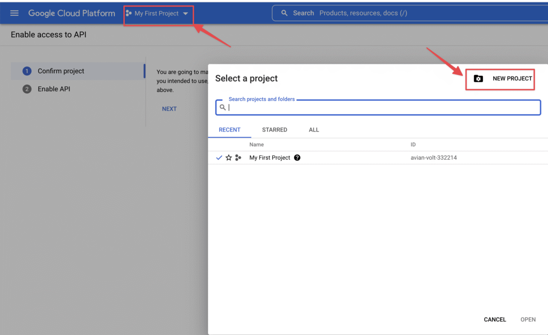 Khi Project được tạo xong bạn sẽ kích hoạt API lên. Ở mục Enable access API thì bạn chọn NEXT