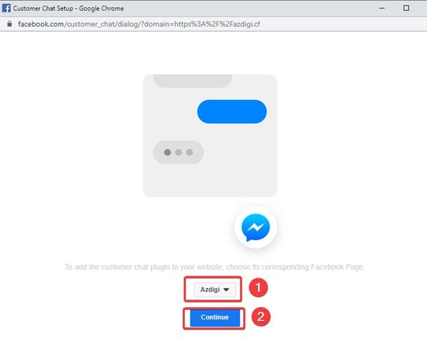 Chọn Page (1) cần tích hợp vào website , và nhấn Continue.