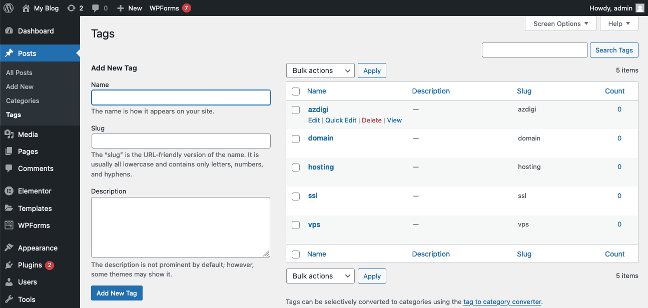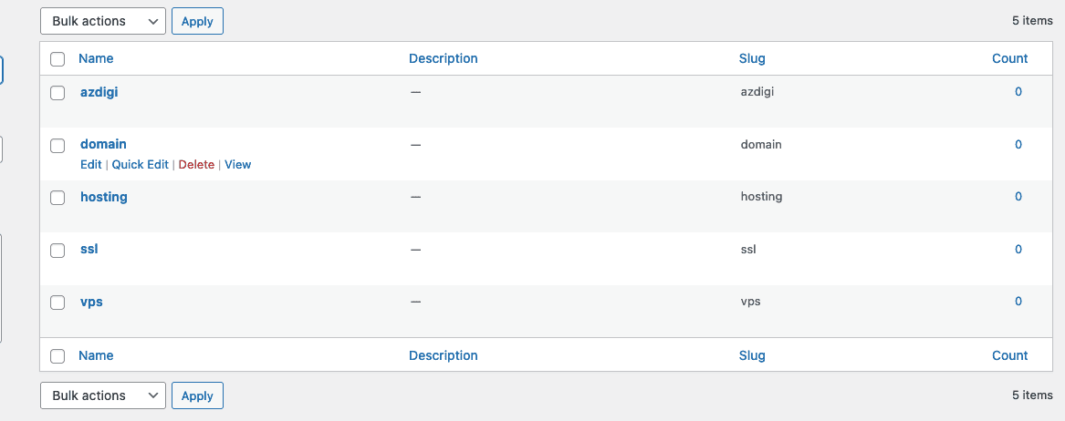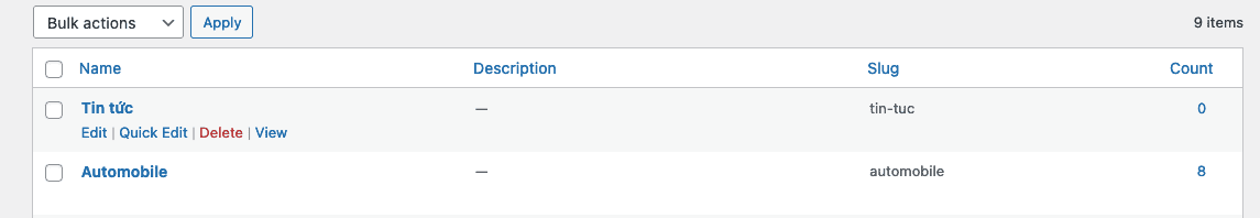 - Quick Edit (Sửa nhanh) – Sửa nhanh tên chuyên thẻ và slug.