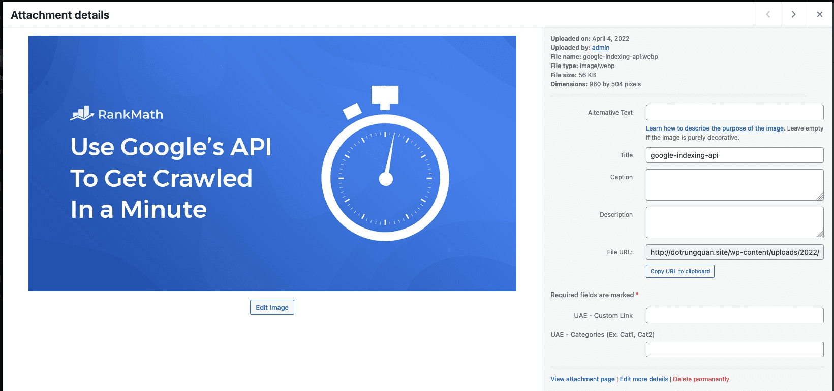 - Alternative text (Văn bản thay thế): Đây chính là thẻ alt chứa đoạn văn bản sẽ hiển thị thay thế khi hình ảnh bị lỗi, thẻ này rất quan trọng trong SEO