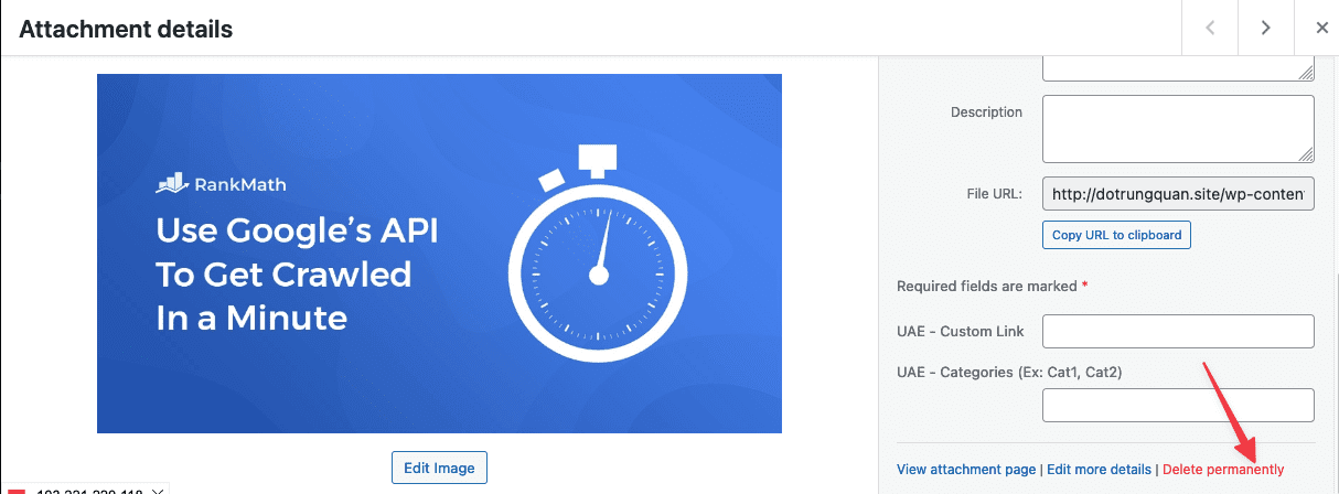 Nếu bạn muốn xóa bài viết hoặc trang, hãy di chuyển con chuột vào tiêu đề của Bài viết/Trang. Nhấp vào Trash (Thùng rác). Bằng cách nhấp vào Trash (Thùng rác), bạn đã di chuyển Bài viết/Trang vào thùng rác