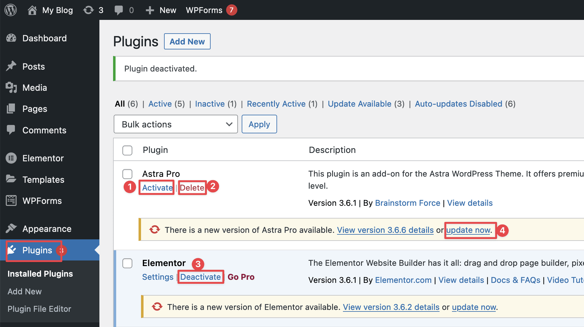 4.3 Hướng dẫn cập nhật, xoá, tắt kích hoạt Plugins