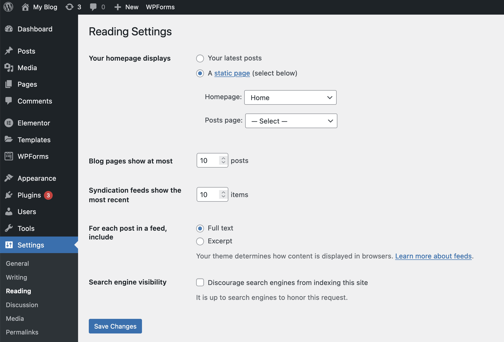 Tính năng này cho phép bạn định cấu hình cách hiển thị trang. Bạn có thể chọn xem trang chủ hoặc bài viết mới nhất tại đây.