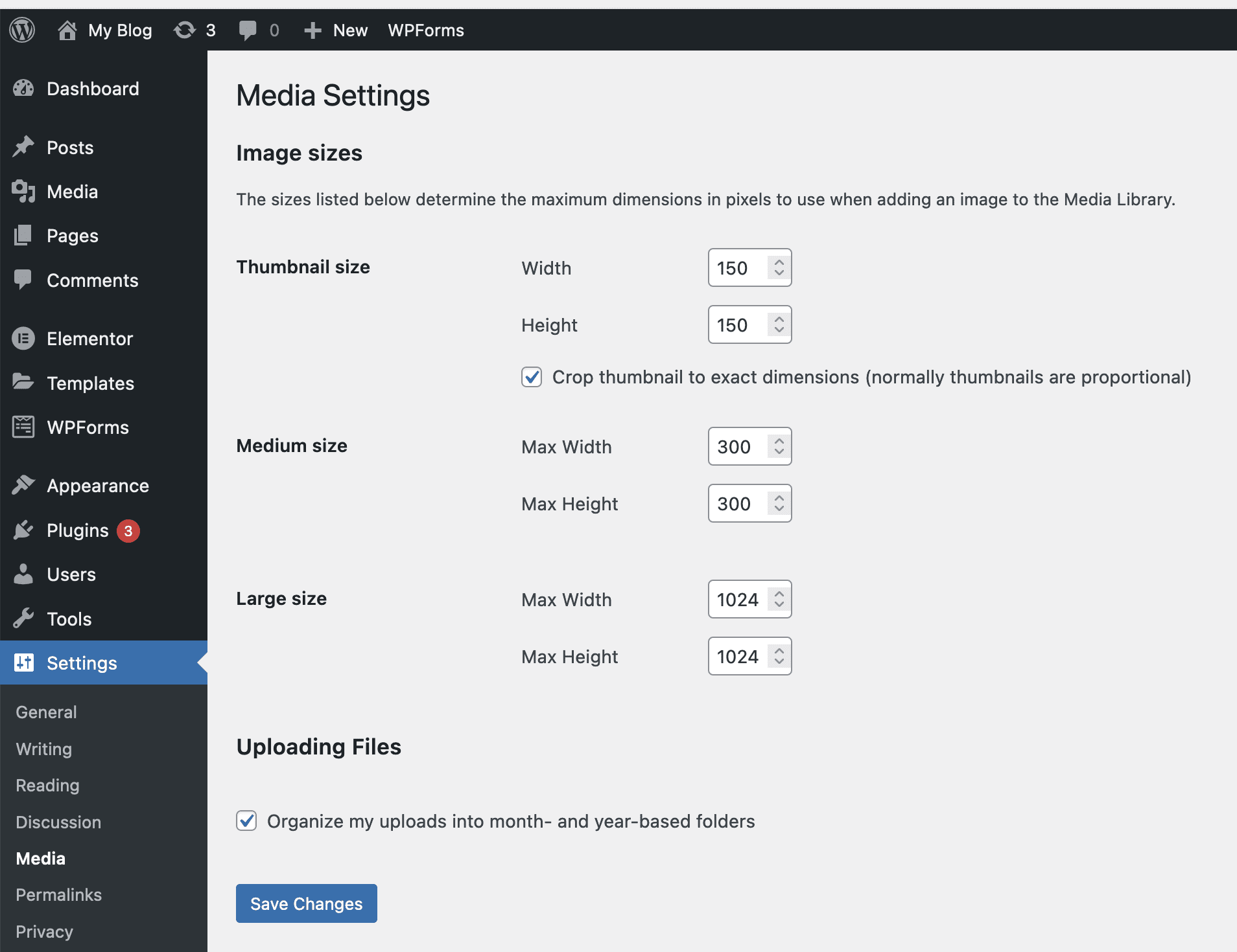 Trong cài đặt Thư viện, bạn có thể chọn kích thước hình ảnh sẽ được tạo khi bạn tải hình ảnh website. Bạn có thể chỉ định kích thước của hình thu nhỏ và cả kích thước hình ảnh trung bình và lớn.