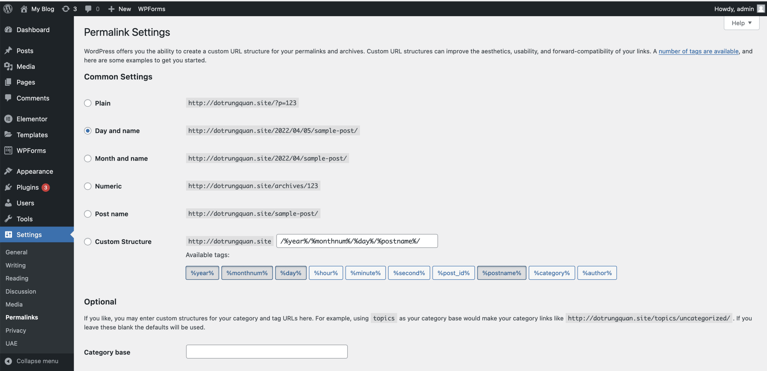 - Day and name: cấu trúc đường dẫn với kiểu hiển thị đầy đủ ngày tháng đăng post và tên post.