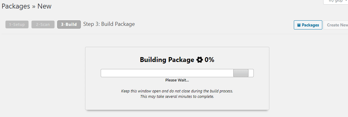 Sau khi cài đặt xọng, bạn click vào Duplicator => Create New để tạo bản sao mới