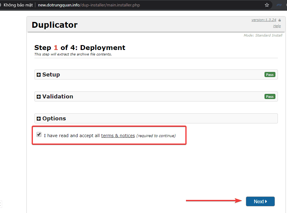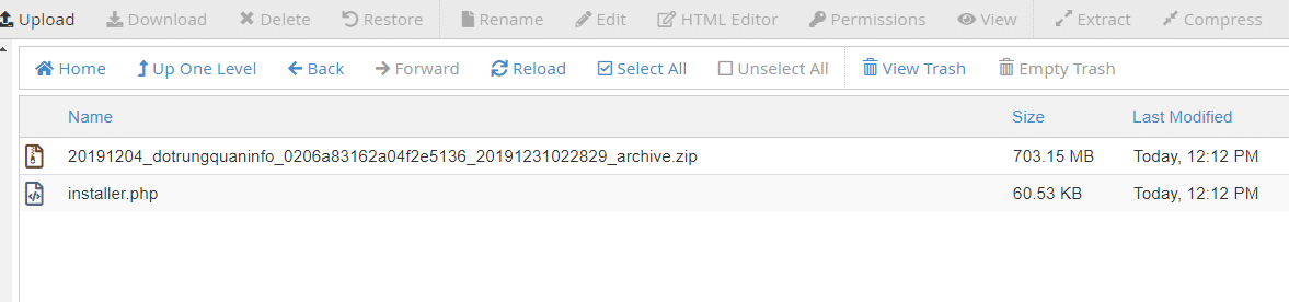 Ở bước này sẽ thực hiện bung file mà bạn đã tạo ở bước 1. Trước tiên bạn cần upload file 2 này lên hosting, đưa vào website bạn cần thực hiện.