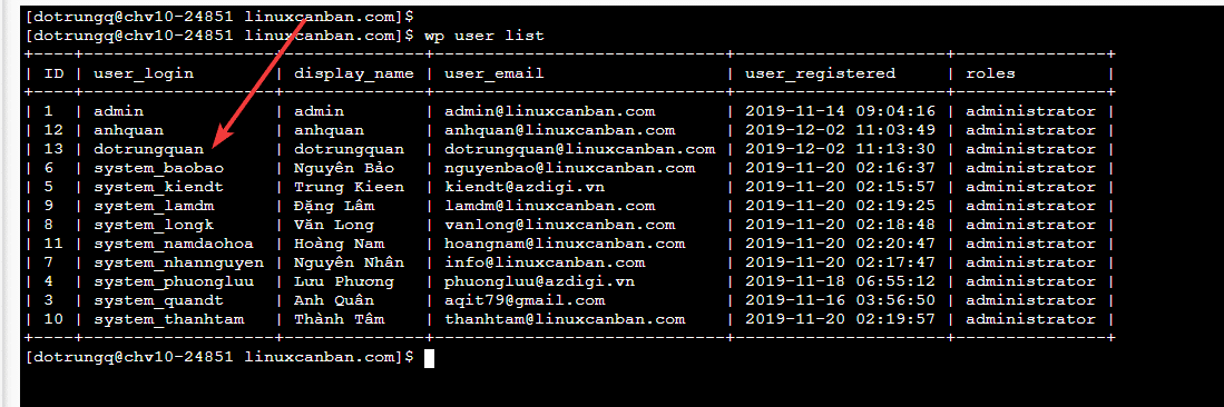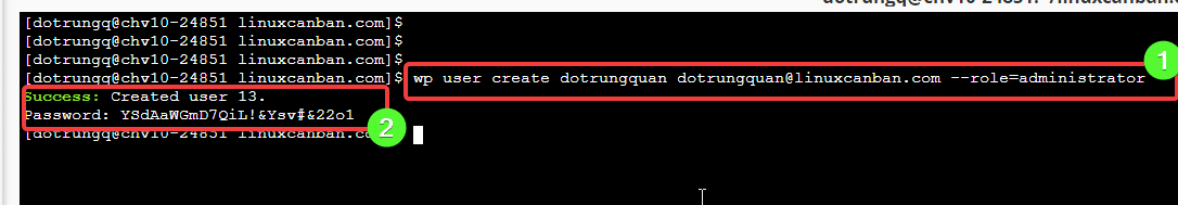 VD: wp user create dotrungquan dotrungquan@linuxcanban.com – -role=administrator