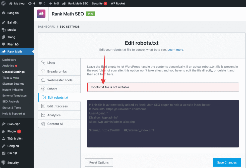 Sửa lỗi robots.txt file is not writable khi sử dụng Rank Math với 2 bước vô cùng đơn giản.